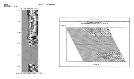 Keywords: Diagrafía y 3D.JPG es Diagrafía en la que se observa una anomalía y su visualización 3D Own 2008-20-24 n d INSITU Dominio publico Geotechnics