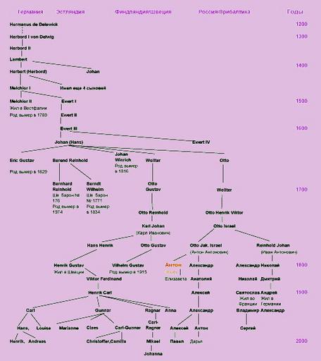 | Keywords: Diagram of von Delwig genealogy tree.jpg en Simplified diagram of the von Delwig genealogy tree with special reference to the Russian branch ru Уп ощённая диаг амма генеалогического де ева семьи фон Дельвиг с акцентом на усскую ветвь own AlexeiDelwig AlexeiDelwig 2011-03-04 Cc-zero Genealogy Family trees Genealogisches Handbuch des Adels Genealogy in Russia Delvig family | ||||