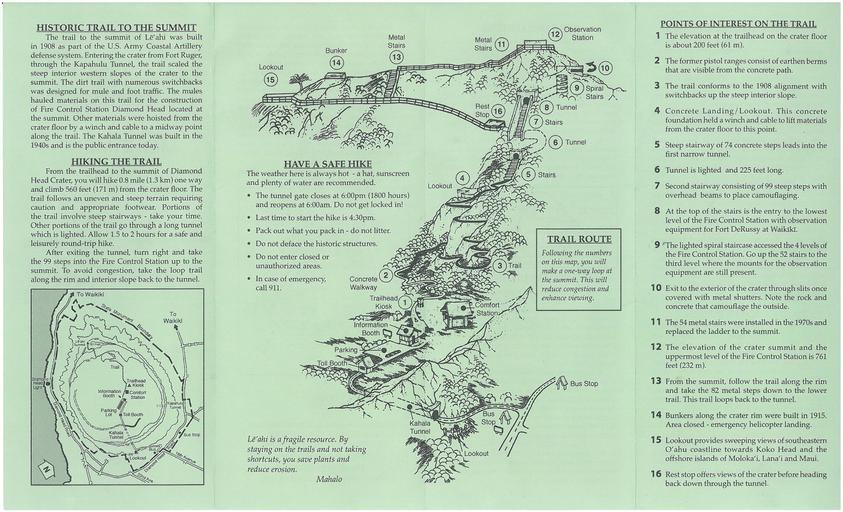 Keywords: Diamond Head - Side 2.jpg en Back side of the brochure for Diamond State Park and US military installation Unknown Handout at Diamond Head State Monument US and Hawaii State Goverments other versions PD-USGov Uploaded with UploadWizard Uncategorized 2015 January 14 |