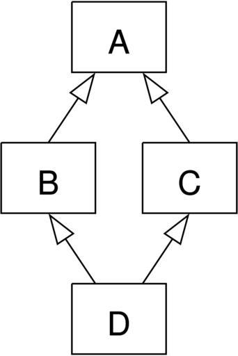 | Keywords: Diamond inheritance.svg en Illustrates diamond multiple inheritance in UML-compliant notation de Veranschaulicht virtuelle Mehrfachvererbung in UML-konformer Notation own RokerHRO 2012-08-08 50px Cc-zero Software design patterns UML Self-published work |