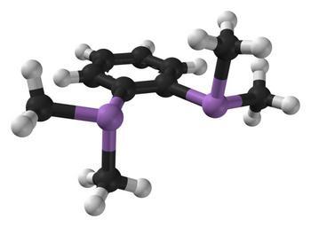 | Keywords: Diars-3D-balls-A.png Ball-and-stick model of the 1 2-bis dimethylarsino benzene molecule C<sub>10</sub>H<sub>16</sub>As<sub>2</sub> more commonly known as diars Colour code Carbon C black Hydrogen H white Arsenic As purple Structure calculated with http //www wavefun com/products/macintosh/Student/mac_student html Spartan Student 4 1 using the Hartree-Fock level of theory and the 3-21G basis set Image generated in http //accelrys com/products/discovery-studio/visualization/discovery-studio-visualizer html Accelrys DS Visualizer Own 2011-01-07 Ben Mills Benjah-bmm27 Images by Ben Mills Ball-and-stick models Diars |