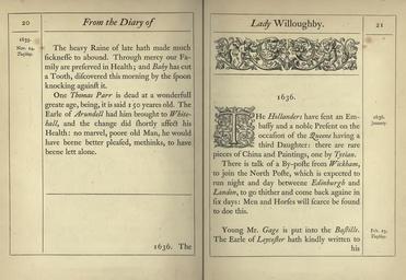 Keywords: Diary-of-lady-willoughby-1844.jpg en Page-spread from Diary of Lady Willoughby printed by Chiswick Press in 1844 ru Разво от из «Дневника леди Уиллоби» напечатанного в «Чизик-п есс» в 1844 году http //www archive org/details/somuchofdiaryofl00rathrich Chiswick Press 1844 PD-Art 1844 books |