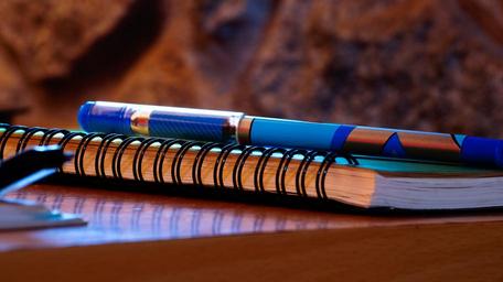 Keywords: diary personal business stone wall background notebook pen office desk blue wire binded