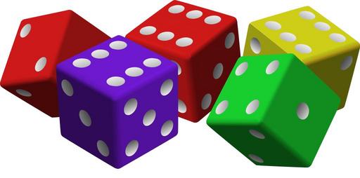 Keywords: dice game luck gambling cubes red violet lilac green yellow numbers