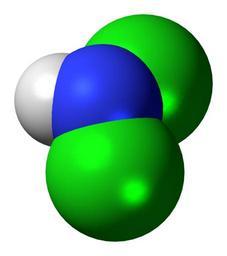 | Keywords: Dichloramine-3D-spacefill.png Space-filling model of the dichloramine molecule a reactive inorganic compound Colour code F0F0F0 Hydrogen H white<br> 3C50FA Nitrogen N blue<br> 14F014 Chlorine Cl green<br> 2011-05-31 own DS Visualizer Jynto talk Ball-and-stick version cc-zero Dichloramine Images by Jynto Space-filling models |