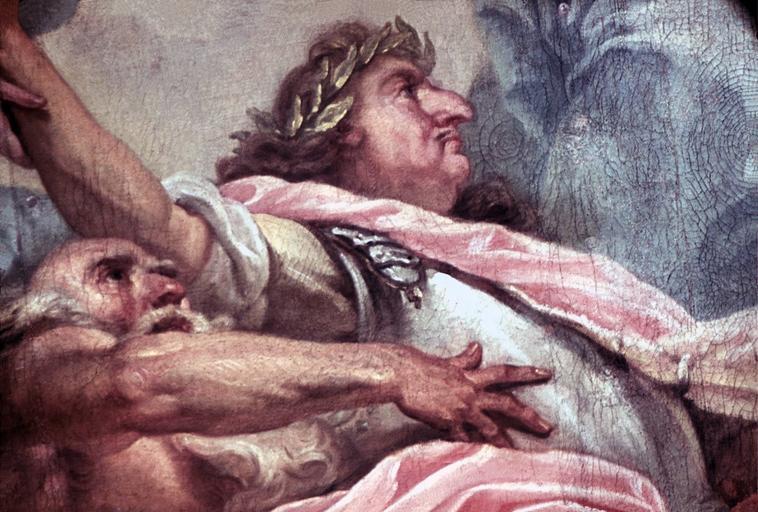 | Keywords: Die Erhebung des Großen Kurfürsten in den Olymp (van Loo) - Kurfürst.jpg The Elevation of the Great Elector into Olympus Oil on canvas destroyed in World War II Ceiling painting detail the Great Elector and Chronos City Palace Potsdam Die Erhebung des Großen Kurfürsten in den Olymp Öl auf Leinwand Kriegsverlust Deckengemälde Ausschnitt Großer Kurfürst und Chronos Stadtschloss Potsdam 20366819 LAC 9 003/33 fmlac9003_33 <br /> Foto Peter Cürlis; color ; Aufnahme-Datum um 1944 04/1944 08; Zugang Dauerleihgabe Kunsthistorisches Institut der Universität Mainz Fotoinhalt Ausschnitt der Kurfürst mit Chronos Teilansicht artwork Creator Charles-Amédée-Philippe van Loo file James Steakley 1751 Die Erhebung des Großen Kurfürsten in den Olymp van Loo thumb left PD-old-100-1923 The Elevation of the Great Elector into Olympus van Loo Portrait paintings with laurel wreaths |