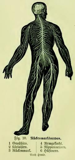 | Keywords: Die Frau als Hausärztin (1911) 010 Rückenmarksnerven.png  de Fig 10 Rückenmarksnerven 1 Großhirn <br/> 2 Kleinhirn <br/> 3 Rückenmark <br/> 4 Armgeflecht <br/> 5 Rippennerven <br/> 6 Hüftnerv <small>Nach Henle </small> 1911 Die Frau als Hausärztin Mit 485 Original-Illustrationen 38 Tafeln und Kunstbeilagen in feinstem Farbendruck dem Porträt der Verfasserin und einem Modell-Album Mann und Weib 800 000 Jubiläumsausgabe Süddeutsches Verlagsinstitut Stuttgart 1911 diefraualshaus00fiscuoft Creator Anna Fischer-Dückelmann Custom license marker 2014 01 03 PD-US PD-old Illustrations from Die Frau als Hausärztin Uploaded with UploadWizard Anatomical plates and drawings of the human nervous system |