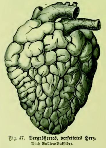 | Keywords: Die Frau als Hausärztin (1911) 047 Vergrößertes verfettetes Herz.png  de Fig 47 Vergrößertes verfettetes Herz <small>Nach Gallieu-Batßière</small> 1911 Die Frau als Hausärztin Mit 485 Original-Illustrationen 38 Tafeln und Kunstbeilagen in feinstem Farbendruck dem Porträt der Verfasserin und einem Modell-Album Mann und Weib 800 000 Jubiläumsausgabe Süddeutsches Verlagsinstitut Stuttgart 1911 diefraualshaus00fiscuoft Creator Anna Fischer-Dückelmann Custom license marker 2014 01 04 PD-US PD-old Illustrations from Die Frau als Hausärztin Uploaded with UploadWizard Anatomical plates and drawings of heart diseases Lipomatosis Obesity non English-language |
