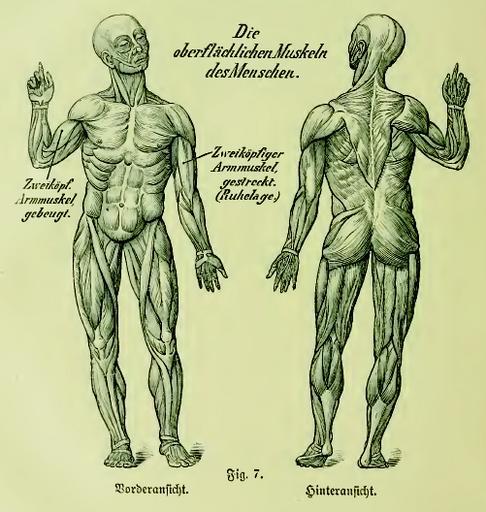 | Keywords: Die Frau als Hausärztin (1911) 007 Die oberflächlichen Muskeln des Menschen.png  de Fig 7 Die oberflächlichen Muskeln des Menschen Vorderansicht Links Zweiköpfiger Armmuskel gebeugt <br/> Rechts Zweiköpfiger Armmuskel gestreckt Ruhelage Hinteransicht 1911 Die Frau als Hausärztin Mit 485 Original-Illustrationen 38 Tafeln und Kunstbeilagen in feinstem Farbendruck dem Porträt der Verfasserin und einem Modell-Album Mann und Weib 800 000 Jubiläumsausgabe Süddeutsches Verlagsinstitut Stuttgart 1911 diefraualshaus00fiscuoft Creator Anna Fischer-Dückelmann Custom license marker 2014 01 03 PD-US PD-old Illustrations from Die Frau als Hausärztin Uploaded with UploadWizard Anatomical plates and drawings of muscles |