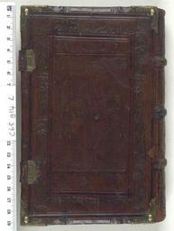 | Keywords: Die gantze Euangelische Histori. Das ist- Das Heilig-Euangelion nach dem inhalt der vier Eu-agelisten - Lower cover (c65g14).jpg Style Biblical scene Panel design; Caption Lower cover; Colour Brown; Edge Gilt and gauffered exhibition history Decorative Technique Tooled in blind; Cover Material Calf 2 pairs of clasps 4 pairs of cornerpieces Bevelled boards object history Text 1541; Frankfurt; Unspecified object type Cc-zero place of creation Binding Germany place of discovery Unspecified British Library image http //www bl uk/catalogues/bookbindings/LargeImage aspx RecordId 020-000007396 ImageId ImageId 43303 Copyright BL Die gantze Euangelische Histori Das ist Das Heilig Euangelion nach dem inhalt der vier Eu agelisten Uploaded with GWToolset Die gantze Euangelische Histori Das ist Das Heilig Euangelion nach dem inhalt der vier Eu agelisten - Lower cover c65g14 http //www webarchive org uk/bldatasets/bindings/7829_4 jpg Bookbinding 16th-century bookbinding British Library Bookbindings |