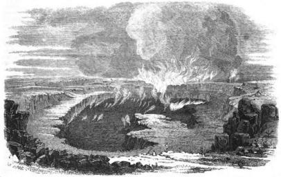 | Keywords: Die Gartenlaube (1853) b 037.jpg de žEs ist eine treue Abbildung von dem Krater des Vulkans Kilauea auf der Insel Hawai welche die höchste der Sandwichinseln im großen Ocean ist Der Krater dieses Vulkans liegt 3630 Fuß über der Meeresfläche auf dem nordöstlichen Abhange des mit ewigem Schnee bedeckten 14 900 Fuß hohen Mauna-Roa der also höher als der Mont-blanc der höchste Berg Europa ™s ist Wir übersehen einen großen Theil des Abhanges der sich von uns ab nach dem Meeresspiegel etwas senkt jedoch nicht so sehr daß wir das 3630 Fuß tiefer liegende Meer sehen könnten So weit das Auge auf dem Bilde reicht sehen wir die Bergebene zerrissen und von tiefen Schluchten durchzogen Wahrscheinlich ist das meiste an den sichtbaren Felsmassen Basalt Lava Bimsstein Schwefel und anderes Gestein welches meist heißflüssig aus dem Erdinnern auf diese Höhe emporgequollen ist In der Mitte des Bildes sehen wir den eigentlichen Krater Es ist ein furchtbarer in die Länge gezogener Schlund welcher bis etwa 100 Fuß unter seinem Rande mit flüssiger Lava angefüllt ist Leicht gekräuselte Säulen von gelbweißen Schwefel-Dämpfen steigen aus der Fläche des drohenden Lavameeres hervor und eine Wolkenschicht von Dampf und Rauch schwebt über diesem Orte der fürchterlichen Naturgewalt Jetzt liegt er ruhig und nicht weit von dem unheildrohenden Rande wachsen Farren-Kräuter und kleine Sträucher “ im nächsten Augenblicke kann aus der trügerischen Ruhe der glühende Lavaspiegel aufschäumen über den Rand steigen und in zerstörendem Flusse an den Seiten des Berges hinabschießen Aus den Schlünden welche nahe dem Krater sind steigen Schwefeldämpfe aus dem entfernteren Wasserdämpfe hervor; jene bekleiden den Boden mit den schönsten Krystallen gediegenen Schwefels diese entlocken ihm in der Nähe des Verderbens üppigen Pflanzenwuchs Also ist der Schlund der Vulkane nicht immer ein Bild des Todes in der Zerstörung Namentlich sind die innern Wände der Krater oft mit den prächtigsten Farben geziert vom lebhaften Schwefelgelb bis zum brennenden Zinnoberroth finden sich in den reinsten Tönen alle Schattirungen Johannes Frisch 1853 Aus der Menschenheimath Vierter Brief Die Vulkane in Die Gartenlaube 1853 The Garden Arbor pages 36 to 38 037 KÄ«lauea in art Lava lakes of KÄ«lauea Lava lakes in art |