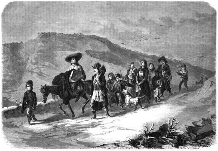 Keywords: Die Gartenlaube (1869) b 301.jpg Zigeunerbegräbniß in Siebenbürgen Nach der Natur aufgenommen von N Chailloux 301 302 Roma people