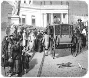 Keywords: Die Gartenlaube (1870) b 348.jpg Nach einer Concilsitzung Nach der Natur aufgenommen von Julius Jury in Rom 348 349 Julius Jury Transport in the Vatican City 1870 in the Vatican City
