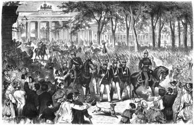 Keywords: Die Gartenlaube (1870) b 645.jpg Die Einbringung des ersten erbeuteten Adlers und der Mitrailleusen in Berlin <br />Nach der Natur aufgenommen von Prof Döpler 645 646 Carl Emil Doepler 1870 in Berlin