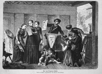 Keywords: Die Gartenlaube (1872) b 189.jpg 189 190 Engravings of people of Vorarlberg Engraved portraits of groups of people History of Bregenzerwald People with artwork