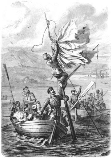 | Keywords: Die Gartenlaube (1877) b 389.jpg Abnahme der Flagge vom Mast des žLutsi Dschelil durch russische Freiwillige in Sicht der türkischen Dampfer An Ort und Stelle aufgenommen von Capitain N Karasine in Braila Nikolai Nikolajewitsch Karasin 1842 “1908 389 390 Gartenlaube 1887 by Nikolay Karazin |