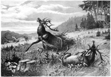 Keywords: Die Gartenlaube (1878) b 733.jpg Eine žDoublette Originalzeichnung von Otto Recknagel in München Otto Recknagel 1845 Eisfeld “1926 München 733 734 Otto Recknagel Deer in art