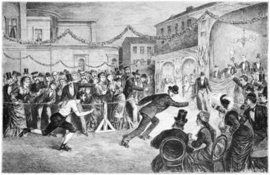 Keywords: Die Gartenlaube (1878) b 717.jpg Im Central-Skating-Rink zu Berlin Nach der Natur gezeichnet von H Lüders 717 718 Hermann Lüders Roller skating in art