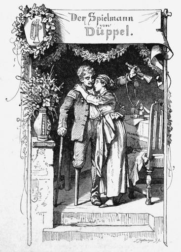 Keywords: Die Gartenlaube (1881) b 801.jpg Bild aus Seite 801 in Die Gartenlaube 1881 <br />Der Spielmann von Düppel Image from page 801 of journal Die Gartenlaube 1881 Battle of Dybbøl Horns in art Drawings of couples in love Leg prostheses Wooden legs People with mobility impairment in art |