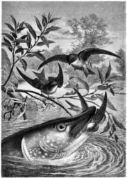 Keywords: Die Gartenlaube (1883) b 361.jpg 361 362 creator Emil Schmidt Engravings of animals Emil Schmidt Esox lucius Swallows in art