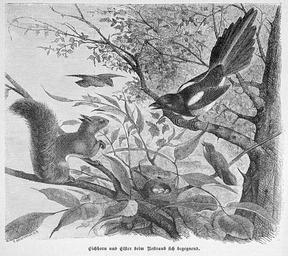 Keywords: Die Gartenlaube (1887) b 698.jpg 698 699 Pica pica in art Squirrels in art Adolf Müller 1821-1910 ImageNote 1 627 1777 854 78 2105 1871 2 Eichhorn und Elster beim Nestraub sich begegnend ImageNoteEnd 1