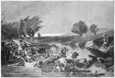 Keywords: Die Gartenlaube (1892) b 373.jpg 373 374 Ludwig Beckmann European otters in art Hunting by dog Dogs in art