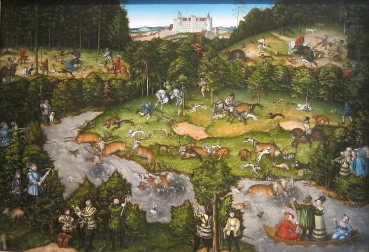 Keywords: Die-Hirschjagd-1540.jpg Artwork Creator Lucas Cranach I 1540 oil panel cm 116 8 170 2 Institution Cleveland Museum of Art Gallery 114 http //www clevelandart org/art/1958 425 Cleveland Museum of Art object history credit line John L Severance Fund langSwitch Signed lower right on boat with a winged serpent and dated 1540 inventory number lower right 1577 Signiert unten rechts auf dem Boot mit geflügelter Schlange und datiert 1540 accession number 1958 425 photo own work Wmpearl PD-old-100 DEFAULTSORT Cranach Lucas 1; Hofjagd bei Hartenfels; Cleveland Museum of Art Hunting scenes by Lucas Cranach I German paintings in the Cleveland Museum of Art 1540 Deer in art Paintings of deer hunting |
