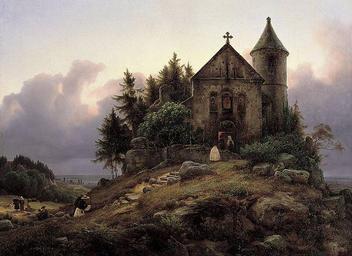 | Keywords: Die Waldkapelle (Lessing 1839).jpg Artwork Creator Carl Friedrich Lessing 1839 oil canvas cm 48 63 Institution Alte Nationalgalerie accession number W S 135 02532206 object history 1861 mit der Sammlung des Konsuls Wagener übernommen credit line exhibition history C F L 1839 ~ lower right signature and date http //iako livejournal com/207802 html iako livejournal com PD-old-100 DEFAULTSORT Lessing Carl Friedrich; Die Waldkapelle 1839; Alte Nationalgalerie Carl Friedrich Lessing Paintings in the Alte Nationalgalerie 1830s Landscape paintings 1839 paintings |