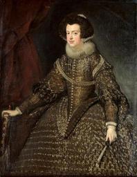 | Keywords: Diego Velázquez 069.jpg Artwork Creator Diego Velázquez de Königin Isabella von Spanien 1602-1644 1632 oil on canvas de die Ecken ergänzt 132 x 101 5 cm Institution Kunsthistorisches Museum de Inv -Nr GG_2129 Provenienz Alter Kaiserlicher Besitz Abgebildete Person Isabelle de Henri IV de Bourbon http //bilddatenbank khm at/viewArtefact id 2022 Other versions <gallery>File Retrato de la reina Isabel de Borbón by Diego Velázquez jpg</gallery> PD-old-100 DEFAULTSORT 1632; Elisabeth of France Viena Paintings by Diego Velázquez in the Kunsthistorisches Museum Elisabeth of France by Velazquez 1632 paintings 17th-century oil portraits of standing women at three-quarter length 17th-century portrait paintings in the Kunsthistorisches Museum Chairs in portraits Drapery in portrait paintings Farthingales Portrait paintings of Queens Portrait paintings of standing women Portraits of queens of Spain Portraits with fans Ruffs in art female 1630s portrait paintings |