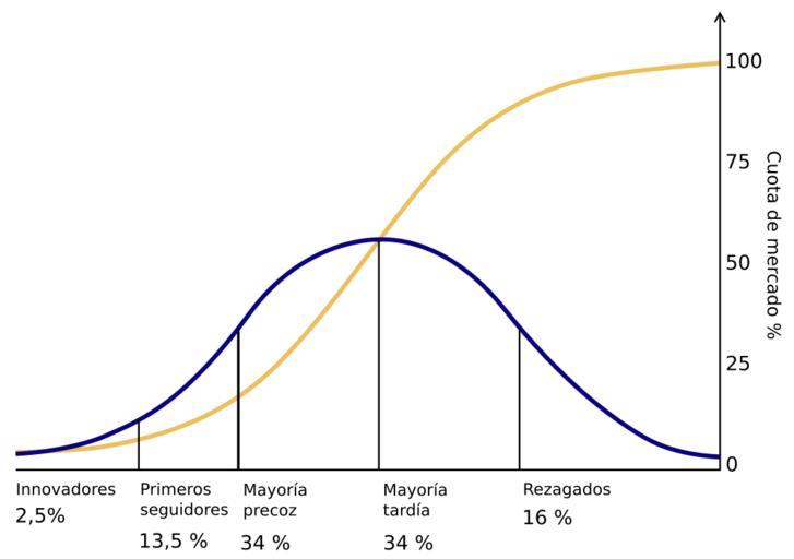 | Keywords: Difusióndeideas.svg La difusión de las innovaciones según Rogers 1962 En el gráfico en azul los grupos de adoptantes de nueva tecnología en sucesión en amarillo la cuota de mercado hasta que finalmente se alcanza el nivel de saturación The diffusion of innovations according to Rogers 1962 With successive groups of consumers adopting the new technology shown in blue its market share yellow will eventually reach the saturation level Labels in Spanish Difusióndeideas png 2011-01-31 15 07 UTC Difusióndeideas png Diffusionofideas PNG Tungsten derivative work Osado derivative work Nicoguaro <span class signature-talk >talk</span> Vectorizado Nicoguaro Difusióndeideas png Sociology Technical diagrams |