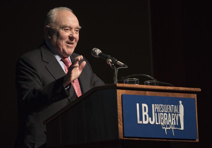 | Keywords: lbj library lbjlibrary austin texas tx usa people speaker Joseph Califano, Jr. Former Face the Nation television anchor and veteran journalist Bob Schieffer discussed his storied career with Joseph Califano, Jr., domestic policy advisor to President Johnson, on Thursday evening, Jan. 21, 2016, at the LBJ Presidential Library auditorium. Schieffer retired in May 2015, in his 58th year as a reporter and his 46th year at CBS News. He is one of the few broadcast or print journalists to have covered all four major beats in the nation's capital – the White House, the Pentagon, the State Department and Capitol Hill. He won eight Emmys and numerous other journalism awards. Califano is founder and chairman of the board of The National Center on Addiction and Substance Abuse (CASA) at Columbia University and serves as a trustee of the LBJ Foundation. LBJ Library photo by Jay Godwin - January 21, 2016 Joseph Califano, Jr. Former Face the Nation television anchor and veteran journalist Bob Schieffer discussed his storied career with Joseph Califano, Jr., domestic policy advisor to President Johnson, on Thursday evening, Jan. 21, 2016, at the LBJ Presidential Library auditorium. Schieffer retired in May 2015, in his 58th year as a reporter and his 46th year at CBS News. He is one of the few broadcast or print journalists to have covered all four major beats in the nation's capital – the White House, the Pentagon, the State Department and Capitol Hill. He won eight Emmys and numerous other journalism awards. Califano is founder and chairman of the board of The National Center on Addiction and Substance Abuse (CASA) at Columbia University and serves as a trustee of the LBJ Foundation. LBJ Library photo by Jay Godwin - January 21, 2016 |