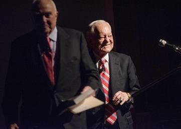 Keywords: lbj library lbjlibrary austin texas tx usa indoor Former Face the Nation television anchor and veteran journalist Bob Schieffer discussed his storied career with Joseph Califano, Jr., domestic policy advisor to President Johnson, on Thursday evening, Jan. 21, 2016, at the LBJ Presidential Library auditorium. Schieffer retired in May 2015, in his 58th year as a reporter and his 46th year at CBS News. He is one of the few broadcast or print journalists to have covered all four major beats in the nation's capital – the White House, the Pentagon, the State Department and Capitol Hill. He won eight Emmys and numerous other journalism awards. Califano is founder and chairman of the board of The National Center on Addiction and Substance Abuse (CASA) at Columbia University and serves as a trustee of the LBJ Foundation. LBJ Library photo by Jay Godwin - January 21, 2016 Former Face the Nation television anchor and veteran journalist Bob Schieffer discussed his storied career with Joseph Califano, Jr., domestic policy advisor to President Johnson, on Thursday evening, Jan. 21, 2016, at the LBJ Presidential Library auditorium. Schieffer retired in May 2015, in his 58th year as a reporter and his 46th year at CBS News. He is one of the few broadcast or print journalists to have covered all four major beats in the nation's capital – the White House, the Pentagon, the State Department and Capitol Hill. He won eight Emmys and numerous other journalism awards. Califano is founder and chairman of the board of The National Center on Addiction and Substance Abuse (CASA) at Columbia University and serves as a trustee of the LBJ Foundation. LBJ Library photo by Jay Godwin - January 21, 2016