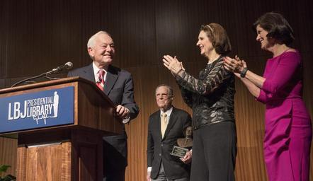 | Keywords: lbj library lbjlibrary austin texas tx usa indoor Former Face the Nation television anchor and veteran journalist Bob Schieffer discussed his storied career with Joseph Califano, Jr., domestic policy advisor to President Johnson, on Thursday evening, Jan. 21, 2016, at the LBJ Presidential Library auditorium. Schieffer retired in May 2015, in his 58th year as a reporter and his 46th year at CBS News. He is one of the few broadcast or print journalists to have covered all four major beats in the nation's capital – the White House, the Pentagon, the State Department and Capitol Hill. He won eight Emmys and numerous other journalism awards. Califano is founder and chairman of the board of The National Center on Addiction and Substance Abuse (CASA) at Columbia University and serves as a trustee of the LBJ Foundation. LBJ Library photo by Jay Godwin - January 21, 2016 Former Face the Nation television anchor and veteran journalist Bob Schieffer discussed his storied career with Joseph Califano, Jr., domestic policy advisor to President Johnson, on Thursday evening, Jan. 21, 2016, at the LBJ Presidential Library auditorium. Schieffer retired in May 2015, in his 58th year as a reporter and his 46th year at CBS News. He is one of the few broadcast or print journalists to have covered all four major beats in the nation's capital – the White House, the Pentagon, the State Department and Capitol Hill. He won eight Emmys and numerous other journalism awards. Califano is founder and chairman of the board of The National Center on Addiction and Substance Abuse (CASA) at Columbia University and serves as a trustee of the LBJ Foundation. LBJ Library photo by Jay Godwin - January 21, 2016 |