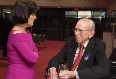 | Keywords: lbj library lbjlibrary austin texas tx usa people indoor Luci Baines Johnson and Jim Wilson. Former Face the Nation television anchor and veteran journalist Bob Schieffer discussed his storied career with Joseph Califano, Jr., domestic policy advisor to President Johnson, on Thursday evening, Jan. 21, 2016, at the LBJ Presidential Library auditorium. Schieffer retired in May 2015, in his 58th year as a reporter and his 46th year at CBS News. He is one of the few broadcast or print journalists to have covered all four major beats in the nation's capital – the White House, the Pentagon, the State Department and Capitol Hill. He won eight Emmys and numerous other journalism awards. Califano is founder and chairman of the board of The National Center on Addiction and Substance Abuse (CASA) at Columbia University and serves as a trustee of the LBJ Foundation. LBJ Library photo by Jay Godwin - January 21, 2016 Luci Baines Johnson and Jim Wilson. Former Face the Nation television anchor and veteran journalist Bob Schieffer discussed his storied career with Joseph Califano, Jr., domestic policy advisor to President Johnson, on Thursday evening, Jan. 21, 2016, at the LBJ Presidential Library auditorium. Schieffer retired in May 2015, in his 58th year as a reporter and his 46th year at CBS News. He is one of the few broadcast or print journalists to have covered all four major beats in the nation's capital – the White House, the Pentagon, the State Department and Capitol Hill. He won eight Emmys and numerous other journalism awards. Califano is founder and chairman of the board of The National Center on Addiction and Substance Abuse (CASA) at Columbia University and serves as a trustee of the LBJ Foundation. LBJ Library photo by Jay Godwin - January 21, 2016 |