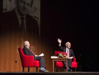 Keywords: lbj library lbjlibrary austin texas tx usa Former Face the Nation television anchor and veteran journalist Bob Schieffer discussed his storied career with Joseph Califano, Jr., domestic policy advisor to President Johnson, on Thursday evening, Jan. 21, 2016, at the LBJ Presidential Library auditorium. Schieffer retired in May 2015, in his 58th year as a reporter and his 46th year at CBS News. He is one of the few broadcast or print journalists to have covered all four major beats in the nation's capital – the White House, the Pentagon, the State Department and Capitol Hill. He won eight Emmys and numerous other journalism awards. Califano is founder and chairman of the board of The National Center on Addiction and Substance Abuse (CASA) at Columbia University and serves as a trustee of the LBJ Foundation. LBJ Library photo by Jay Godwin - January 21, 2016 Former Face the Nation television anchor and veteran journalist Bob Schieffer discussed his storied career with Joseph Califano, Jr., domestic policy advisor to President Johnson, on Thursday evening, Jan. 21, 2016, at the LBJ Presidential Library auditorium. Schieffer retired in May 2015, in his 58th year as a reporter and his 46th year at CBS News. He is one of the few broadcast or print journalists to have covered all four major beats in the nation's capital – the White House, the Pentagon, the State Department and Capitol Hill. He won eight Emmys and numerous other journalism awards. Califano is founder and chairman of the board of The National Center on Addiction and Substance Abuse (CASA) at Columbia University and serves as a trustee of the LBJ Foundation. LBJ Library photo by Jay Godwin - January 21, 2016
