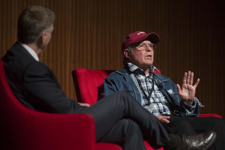 | Keywords: austin texas indoor Singer/songwriter Country Joe McDonald, right, a Navy veteran and Vietnam War protester, discusses how the music of the 1960s and 1970s helped to comfort U.S. troops in Vietnam while fueling the anti-war movement at home. He spoke on Thursday, April 28, 2016, at the LBJ Presidential Library's Vietnam War Summit. McDonald also performed one of his most popular Vietnam War protest songs, "I Feel Like I'm Fixin' to Die Rag" as well as "Superbird." He was joined by folk singer Peter Yarrow, who used to perform with folk group Peter, Paul and Mary. Yarrow sang "Where Have All the Flowers Gone?" The music discussion was moderated by Bob Santelli, left, executive director of the GRAMMY Museum. LBJ Library photo by Marsha Miller 04/28/2016. Singer/songwriter Country Joe McDonald, right, a Navy veteran and Vietnam War protester, discusses how the music of the 1960s and 1970s helped to comfort U.S. troops in Vietnam while fueling the anti-war movement at home. He spoke on Thursday, April 28, 2016, at the LBJ Presidential Library's Vietnam War Summit. McDonald also performed one of his most popular Vietnam War protest songs, "I Feel Like I'm Fixin' to Die Rag" as well as "Superbird." He was joined by folk singer Peter Yarrow, who used to perform with folk group Peter, Paul and Mary. Yarrow sang "Where Have All the Flowers Gone?" The music discussion was moderated by Bob Santelli, left, executive director of the GRAMMY Museum. LBJ Library photo by Marsha Miller 04/28/2016. |