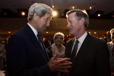 winner DIG13879dhk 009.jpg en U S Secretary of State John Kerry a Vietnam War veteran speaks with William McRaven University of Texas System Chancellor and Former Commander of U S Special Operations Command at a reception following his keynote address Secretary Kerry delivered the keynote address at the LBJ Presidential Library's Vietnam War Summit on Wednesday April 27 2016 Kerry a former U S senator and co-founder of Vietnam Veterans of America gained national attention after speaking out publicly against the Vietnam War returning from two tours of duty Kerry's speech was part of the LBJ Library's three-day Vietnam War Summit 2016-04-27 20 53 51 https //www flickr com/photos/lbjlibrarynow/26092344713/ David Hume Kennerly other versions PD-USGov John Kerry William H McRaven |