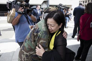 | Keywords: people Genie Giao Nguyen, right, president and CEO of the Voice of Vietnamese Americans, greets a military veteran on Tuesday, April 26, 2016, at a ceremony to recognize the contributions of Vietnam War veterans. The LBJ Presidential Library and the United States of America Vietnam War Commemoration group hosted the ceremony on the plaza outside the library. Each veteran at the ceremony received a Vietnam veteran lapel pin engraved on the back with “A Grateful Nation Thanks and Honors You.” The LBJ Library is hosting a three-day Vietnam War Summit to discuss and reflect upon the lessons and legacy of the 50-year-old war. Speakers include U.S. Secretary of State John Kerry, a Vietnam veteran; former U.S. Secretary of State Henry Kissinger, who negotiated the 1973 Paris Peace Accords that ended U.S. combat in Vietnam; documentary filmmakers Ken Burns and Lynn Novick, who are completing a 10-part, 18-hour Vietnam War documentary to be shown on PBS in 2017; and Vietnam combat veterans. The Vietnam War Summit runs from April 26-April 28 at the LBJ Library. LBJ Library photo by David Hume Kennerly 04/26/2016. Genie Giao Nguyen, right, president and CEO of the Voice of Vietnamese Americans, greets a military veteran on Tuesday, April 26, 2016, at a ceremony to recognize the contributions of Vietnam War veterans. The LBJ Presidential Library and the United States of America Vietnam War Commemoration group hosted the ceremony on the plaza outside the library. Each veteran at the ceremony received a Vietnam veteran lapel pin engraved on the back with “A Grateful Nation Thanks and Honors You.” The LBJ Library is hosting a three-day Vietnam War Summit to discuss and reflect upon the lessons and legacy of the 50-year-old war. Speakers include U.S. Secretary of State John Kerry, a Vietnam veteran; former U.S. Secretary of State Henry Kissinger, who negotiated the 1973 Paris Peace Accords that ended U.S. combat in Vietnam; documentary filmmakers Ken Burns and Lynn Novick, who are completing a 10-part, 18-hour Vietnam War documentary to be shown on PBS in 2017; and Vietnam combat veterans. The Vietnam War Summit runs from April 26-April 28 at the LBJ Library. LBJ Library photo by David Hume Kennerly 04/26/2016. |