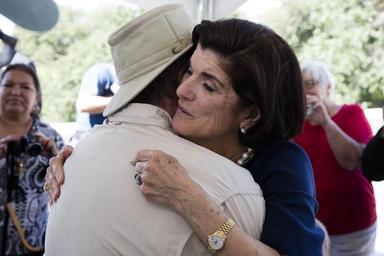 | Keywords: winner Luci Baines Johnson, daughter of President Lyndon Johnson and Lady Bird Johnson, hugs Vietnam veteran Ray Leugers of Austin a ceremony to honor Vietnam War veterans outside the LBJ Presidential Library on Wednesday, April 27, 2016. Leugers served in Vietnam in 1968-69 in the First Infantry Division. The ceremony was part of the LBJ Library's three-day Vietnam War Summit, which continues through Thursday, April 28. LBJ Library photo by David Hume Kennerly 04/27/2016. Luci Baines Johnson, daughter of President Lyndon Johnson and Lady Bird Johnson, hugs Vietnam veteran Ray Leugers of Austin a ceremony to honor Vietnam War veterans outside the LBJ Presidential Library on Wednesday, April 27, 2016. Leugers served in Vietnam in 1968-69 in the First Infantry Division. The ceremony was part of the LBJ Library's three-day Vietnam War Summit, which continues through Thursday, April 28. LBJ Library photo by David Hume Kennerly 04/27/2016. |