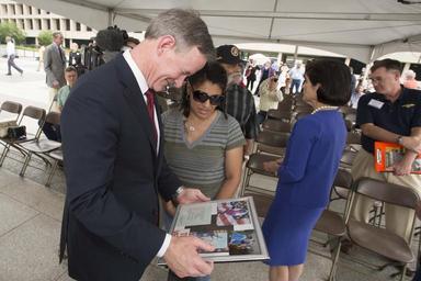 | Keywords: austin texas University of Texas System Chancellor William H. McRaven, a retired U.S. Navy four-star admiral, looks at a framed picture of José Luis Riojas, who served in Vietnam in 1968-69 and received a Purple Heart. He died in 2014. His daughter, Monica Ontiveros, accepted a military service lapel pin in his honor from McRaven at the LBJ Presidential Library on Thursday, April 28, 2016. At right is Luci Baines Johnson, daughter of President Lyndon Johnson and Lady Bird Johnson. The Library held a three-day Vietnam War Summit from April 26-28, 2016. The summit included twice daily recognition ceremonies for Vietnam veterans. Each veteran received a lapel pin engraved on the back with “A Grateful Nation Thanks and Honors You.” LBJ Library photo by Marsha Miller 04/28/2016. University of Texas System Chancellor William H. McRaven, a retired U.S. Navy four-star admiral, looks at a framed picture of José Luis Riojas, who served in Vietnam in 1968-69 and received a Purple Heart. He died in 2014. His daughter, Monica Ontiveros, accepted a military service lapel pin in his honor from McRaven at the LBJ Presidential Library on Thursday, April 28, 2016. At right is Luci Baines Johnson, daughter of President Lyndon Johnson and Lady Bird Johnson. The Library held a three-day Vietnam War Summit from April 26-28, 2016. The summit included twice daily recognition ceremonies for Vietnam veterans. Each veteran received a lapel pin engraved on the back with “A Grateful Nation Thanks and Honors You.” LBJ Library photo by Marsha Miller 04/28/2016. |