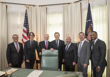 | Keywords: dig13890-157.nef dig13890157nef austin tx usa In conjunction with HBO and the LBJ School of Public Affairs, the LBJ Library held a special preview screening and discussion of the new HBO film "All the Way" starring Bryan Cranston in his Tony Award-winning role as Lyndon Johnson and Anthony Mackie as Martin Luther King, Jr. Following the screening of the film, writer Robert Schenkkan, director Jay Roach, actors Bryan Cranston and Anthony Mackie, and historian and consultant on the film Doris Kearns Goodwin, joined Library Director Mark Updegrove on stage for a discussion. The film will debut on HBO on May 21, 2016. LBJ Library photo by Jay Godwin In conjunction with HBO and the LBJ School of Public Affairs, the LBJ Library held a special preview screening and discussion of the new HBO film "All the Way" starring Bryan Cranston in his Tony Award-winning role as Lyndon Johnson and Anthony Mackie as Martin Luther King, Jr. Following the screening of the film, writer Robert Schenkkan, director Jay Roach, actors Bryan Cranston and Anthony Mackie, and historian and consultant on the film Doris Kearns Goodwin, joined Library Director Mark Updegrove on stage for a discussion. The film will debut on HBO on May 21, 2016. LBJ Library photo by Jay Godwin |