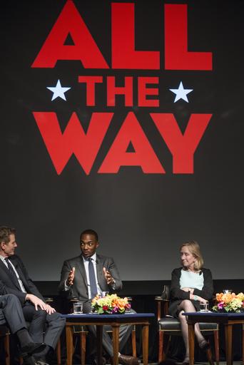 | Keywords: dig13890-230.nef dig13890230nef austin tx usa indoor In conjunction with HBO and the LBJ School of Public Affairs, the LBJ Library held a special preview screening and discussion of the new HBO film "All the Way" starring Bryan Cranston in his Tony Award-winning role as Lyndon Johnson and Anthony Mackie as Martin Luther King, Jr. Following the screening of the film, writer Robert Schenkkan, director Jay Roach, actors Bryan Cranston and Anthony Mackie, and historian and consultant on the film Doris Kearns Goodwin, joined Library Director Mark Updegrove on stage for a discussion. The film will debut on HBO on May 21, 2016. LBJ Library photo by Jay Godwin In conjunction with HBO and the LBJ School of Public Affairs, the LBJ Library held a special preview screening and discussion of the new HBO film "All the Way" starring Bryan Cranston in his Tony Award-winning role as Lyndon Johnson and Anthony Mackie as Martin Luther King, Jr. Following the screening of the film, writer Robert Schenkkan, director Jay Roach, actors Bryan Cranston and Anthony Mackie, and historian and consultant on the film Doris Kearns Goodwin, joined Library Director Mark Updegrove on stage for a discussion. The film will debut on HBO on May 21, 2016. LBJ Library photo by Jay Godwin |