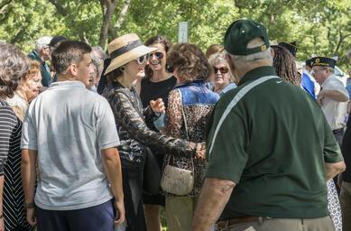 | Keywords: dsc_2338.nef dsc2338nef austin tx usa outdoor Lynda Johnson Robb, center, daughter of President Lyndon Johnson, greets attendees after the ceremony. The Lyndon B. Johnson National Historical Park celebrated the 108th anniversary of President Johnson’s birth with a ceremony at 10:00 am on Saturday, August 27. Continuing a tradition that Lady Bird Johnson began in 1973, a wreath was placed at the president’s gravesite in the Johnson family cemetery at the LBJ Ranch by Park Superintendent Russ Whitlock and Brigadier General Heather L. Pringle. After the ceremony, park staff members commemorated the National Park Service Centennial by reading the names of the 47 national park units established during Lyndon Johnson’s presidency. LBJ Library photo by Jay Godwin 08/27/2016 Lynda Johnson Robb, center, daughter of President Lyndon Johnson, greets attendees after the ceremony. The Lyndon B. Johnson National Historical Park celebrated the 108th anniversary of President Johnson’s birth with a ceremony at 10:00 am on Saturday, August 27. Continuing a tradition that Lady Bird Johnson began in 1973, a wreath was placed at the president’s gravesite in the Johnson family cemetery at the LBJ Ranch by Park Superintendent Russ Whitlock and Brigadier General Heather L. Pringle. After the ceremony, park staff members commemorated the National Park Service Centennial by reading the names of the 47 national park units established during Lyndon Johnson’s presidency. LBJ Library photo by Jay Godwin 08/27/2016 |