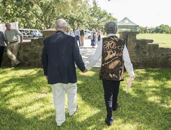 Keywords: dsc_2344.nef dsc2344nef austin tx usa outdoor Barney and Libby Hulett walk hand-in-hand as they leave the ceremony. The Lyndon B. Johnson National Historical Park celebrated the 108th anniversary of President Johnson’s birth with a ceremony at 10:00 am on Saturday, August 27. Continuing a tradition that Lady Bird Johnson began in 1973, a wreath was placed at the president’s gravesite in the Johnson family cemetery at the LBJ Ranch by Park Superintendent Russ Whitlock and Brigadier General Heather L. Pringle. After the ceremony, park staff members commemorated the National Park Service Centennial by reading the names of the 47 national park units established during Lyndon Johnson’s presidency. LBJ Library photo by Jay Godwin 08/27/2016 Barney and Libby Hulett walk hand-in-hand as they leave the ceremony. The Lyndon B. Johnson National Historical Park celebrated the 108th anniversary of President Johnson’s birth with a ceremony at 10:00 am on Saturday, August 27. Continuing a tradition that Lady Bird Johnson began in 1973, a wreath was placed at the president’s gravesite in the Johnson family cemetery at the LBJ Ranch by Park Superintendent Russ Whitlock and Brigadier General Heather L. Pringle. After the ceremony, park staff members commemorated the National Park Service Centennial by reading the names of the 47 national park units established during Lyndon Johnson’s presidency. LBJ Library photo by Jay Godwin 08/27/2016