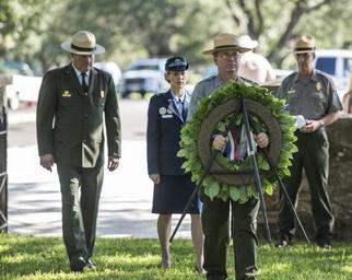 | Keywords: dsc_6830.nef dsc6830nef austin tx usa outdoor The Lyndon B. Johnson National Historical Park celebrated the 108th anniversary of President Johnson’s birth with a ceremony at 10:00 am on Saturday, August 27. Continuing a tradition that Lady Bird Johnson began in 1973, a wreath was placed at the president’s gravesite in the Johnson family cemetery at the LBJ Ranch by Park Superintendent Russ Whitlock and Brigadier General Heather L. Pringle. After the ceremony, park staff members commemorated the National Park Service Centennial by reading the names of the 47 national park units established during Lyndon Johnson’s presidency. LBJ Library photo by Jay Godwin 08/27/2016 The Lyndon B. Johnson National Historical Park celebrated the 108th anniversary of President Johnson’s birth with a ceremony at 10:00 am on Saturday, August 27. Continuing a tradition that Lady Bird Johnson began in 1973, a wreath was placed at the president’s gravesite in the Johnson family cemetery at the LBJ Ranch by Park Superintendent Russ Whitlock and Brigadier General Heather L. Pringle. After the ceremony, park staff members commemorated the National Park Service Centennial by reading the names of the 47 national park units established during Lyndon Johnson’s presidency. LBJ Library photo by Jay Godwin 08/27/2016 |