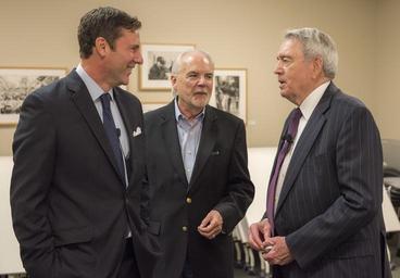 | Keywords: dig13960_001.jpg dig13960001jpg austin tx usa suit LBJ Library Director Mark Updegrove, left, Executive Director of The Dolph Briscoe Center for American History, Don Carleton and Dan Rather. On Tuesday evening November 1st, 2016, veteran journalist Dan Rather joined Friends of the LBJ Library members to speak about his remarkable career spanning six decades in print, radio, and television news. Rather, a native Texan, has covered almost every major news event since the 1960s, including President John F. Kennedy's assassination, the U.S. civil rights movement, the Vietnam War, the Watergate scandal, the fall of the Berlin Wall, and the 9/11 terrorist attacks. He was anchor and managing editor of the CBS Evening News for 24 years. He now serves as president and CEO of News and Guts, an independent production company. The evening was co-hosted by the Dolph Briscoe Center for American History at the University of Texas at Austin. LBJ Library photo by Jay Godwin 11/01/2016 LBJ Library Director Mark Updegrove, left, Executive Director of The Dolph Briscoe Center for American History, Don Carleton and Dan Rather. On Tuesday evening November 1st, 2016, veteran journalist Dan Rather joined Friends of the LBJ Library members to speak about his remarkable career spanning six decades in print, radio, and television news. Rather, a native Texan, has covered almost every major news event since the 1960s, including President John F. Kennedy's assassination, the U.S. civil rights movement, the Vietnam War, the Watergate scandal, the fall of the Berlin Wall, and the 9/11 terrorist attacks. He was anchor and managing editor of the CBS Evening News for 24 years. He now serves as president and CEO of News and Guts, an independent production company. The evening was co-hosted by the Dolph Briscoe Center for American History at the University of Texas at Austin. LBJ Library photo by Jay Godwin 11/01/2016 |