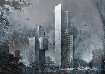 Keywords: digital art city cities urban skyscrapers building architecture street sky clouds skyline trees futuristic hyper grunge