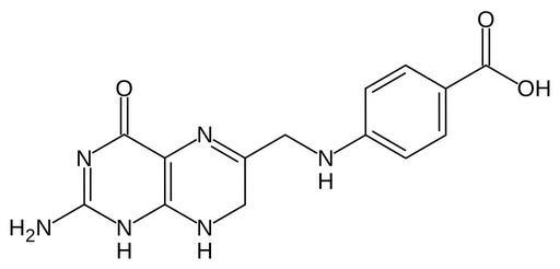 Keywords: Dihydropteroic acid.svg Structural diagram of dihydropteroic acid Created using http //www acdlabs com/download/chemsk html ACD/ChemSketch 10 0 and Inkscape Own 2007-02-04 Fvasconcellos Amines Carboxylic acids Nitrogen heterocycles