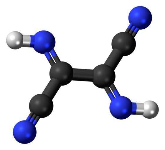 | Keywords: Diiminosuccinonitrile-3D-balls.png Ball-and-stick model of the diiminosuccinonitrile molecule an experimental nitrogen compound Colour code 505050 Carbon C black<br> F0F0F0 Hydrogen H white<br> 3C50FA Nitrogen N blue<br> 2011-02-02 own DS Visualizer Jynto talk Space-filling version cc-zero Nitriles Imines Images by Jynto Ball-and-stick models |
