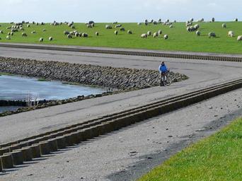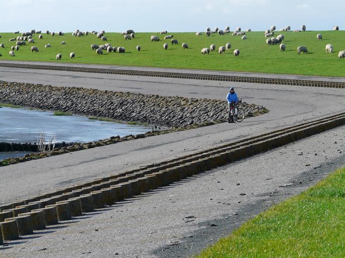 Keywords: dike dike road north sea nordfriesland sheep grass sweet idyll cycling cycle dove